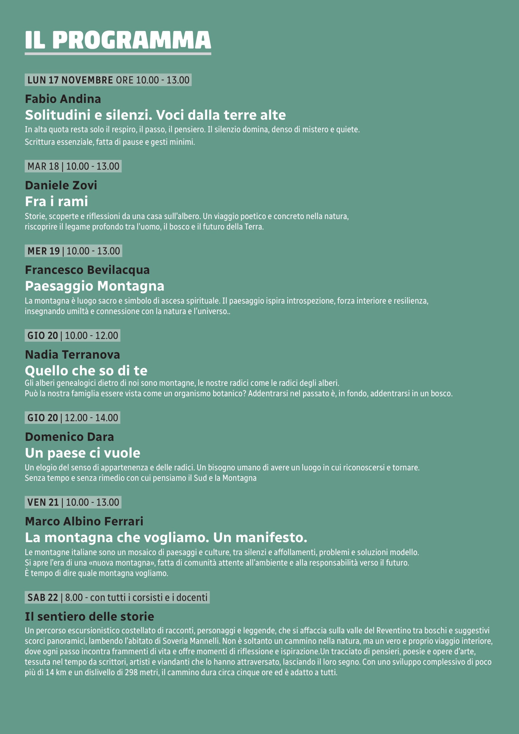 - Potrai confrontarti con scrittori italiani specializzati nel tema della montagna.